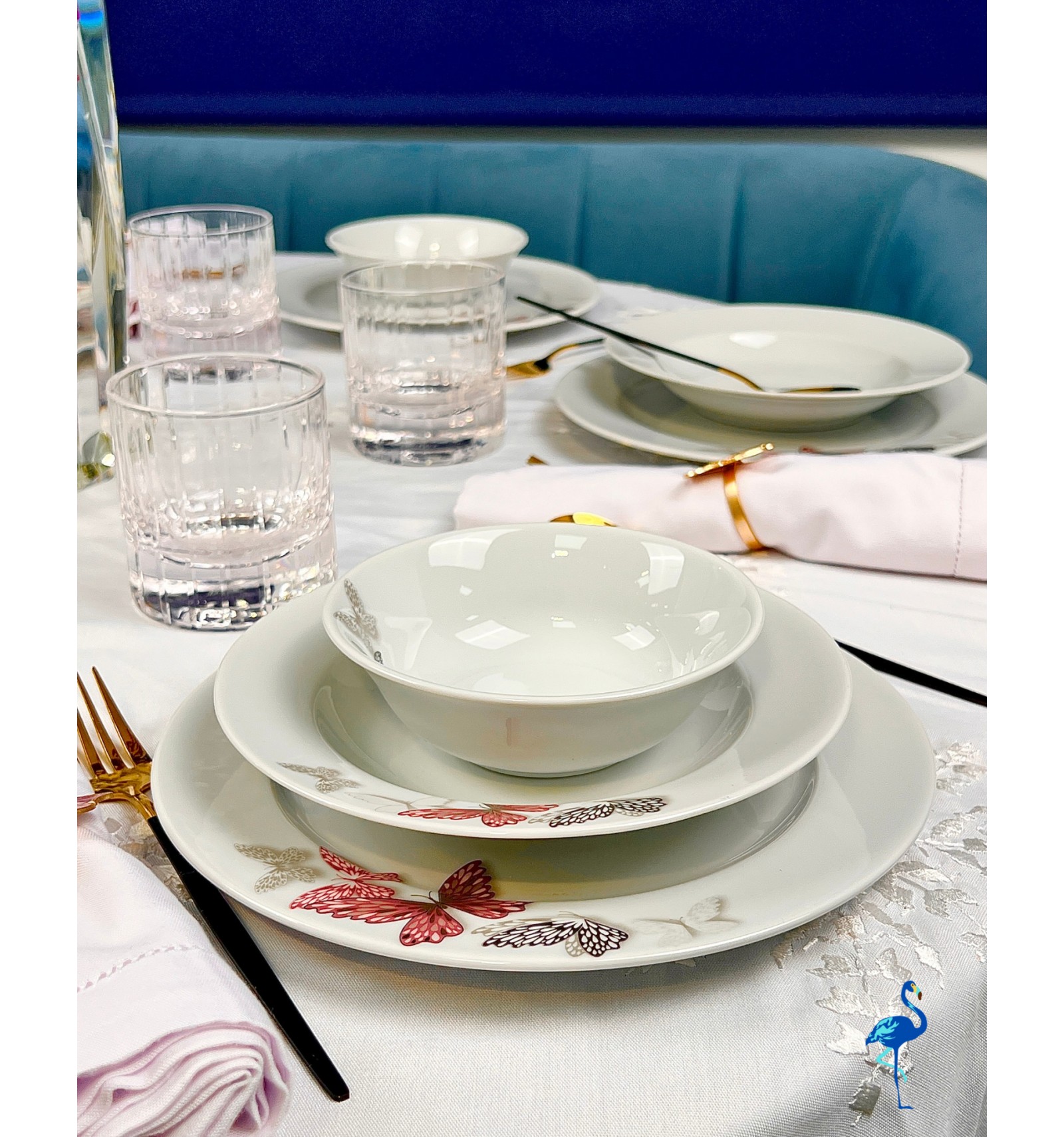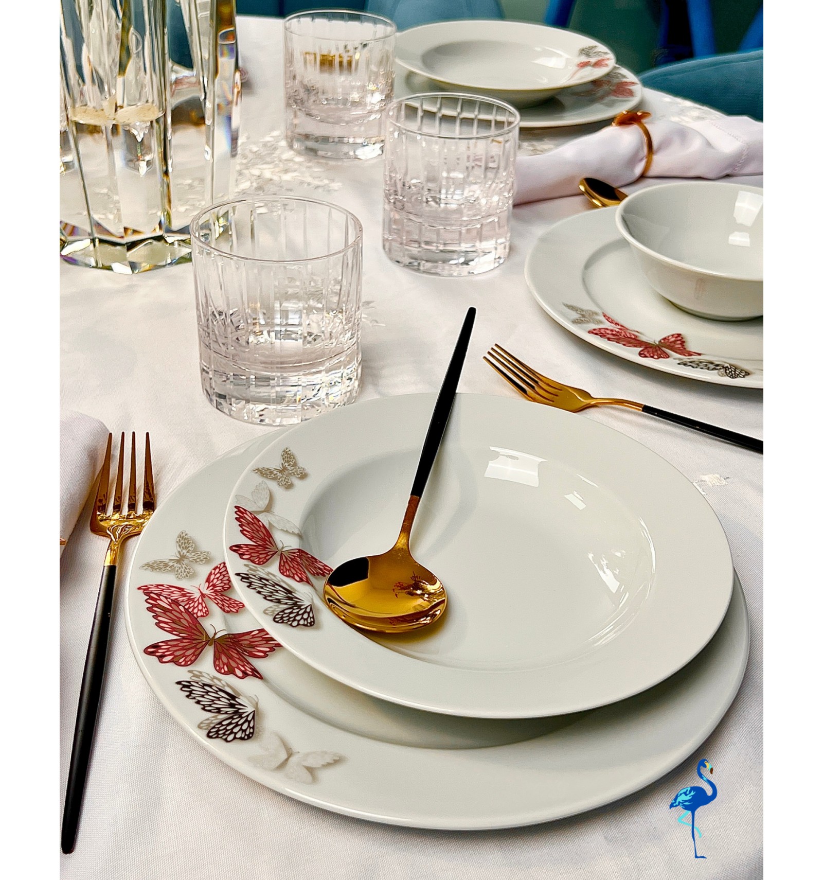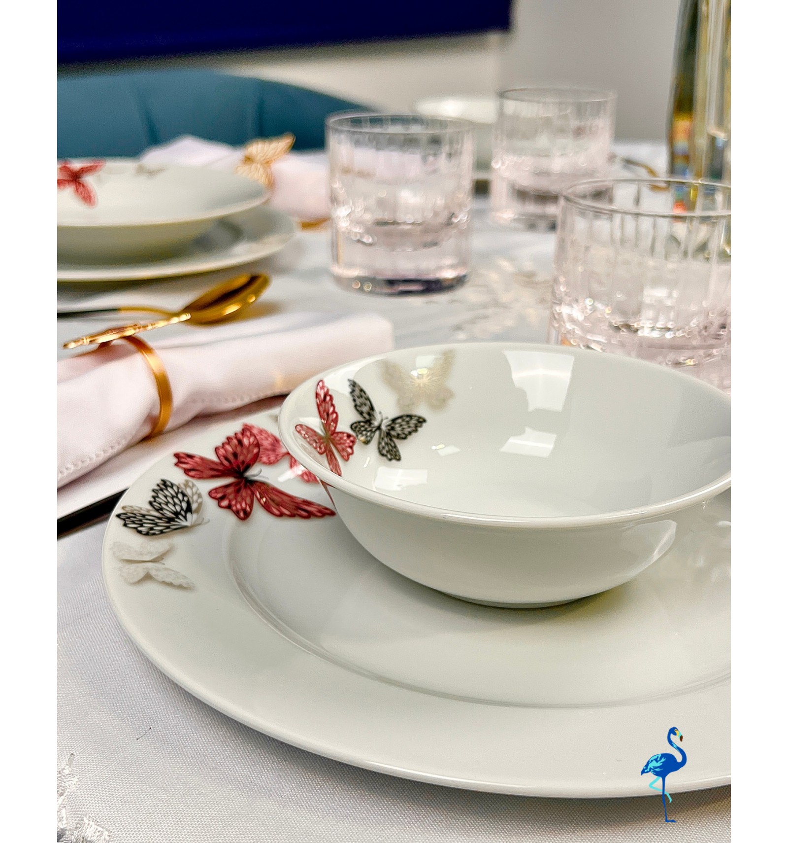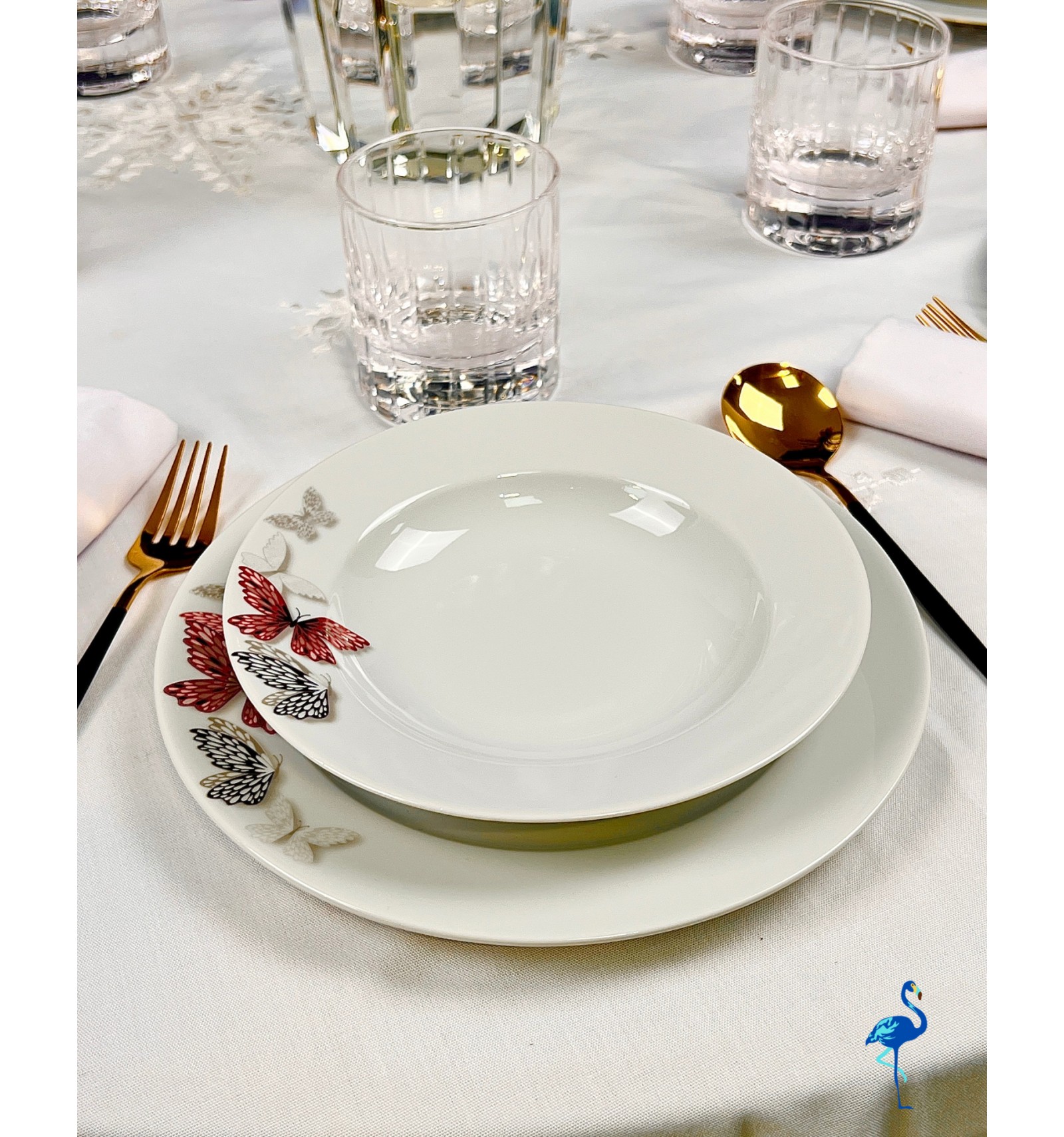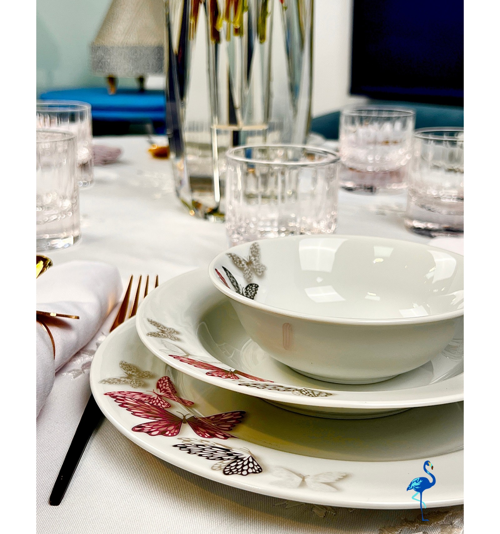 Apportez une touche de légèreté et de raffinement à vos repas avec le service de table Butterfly signé Flamant Bleu.