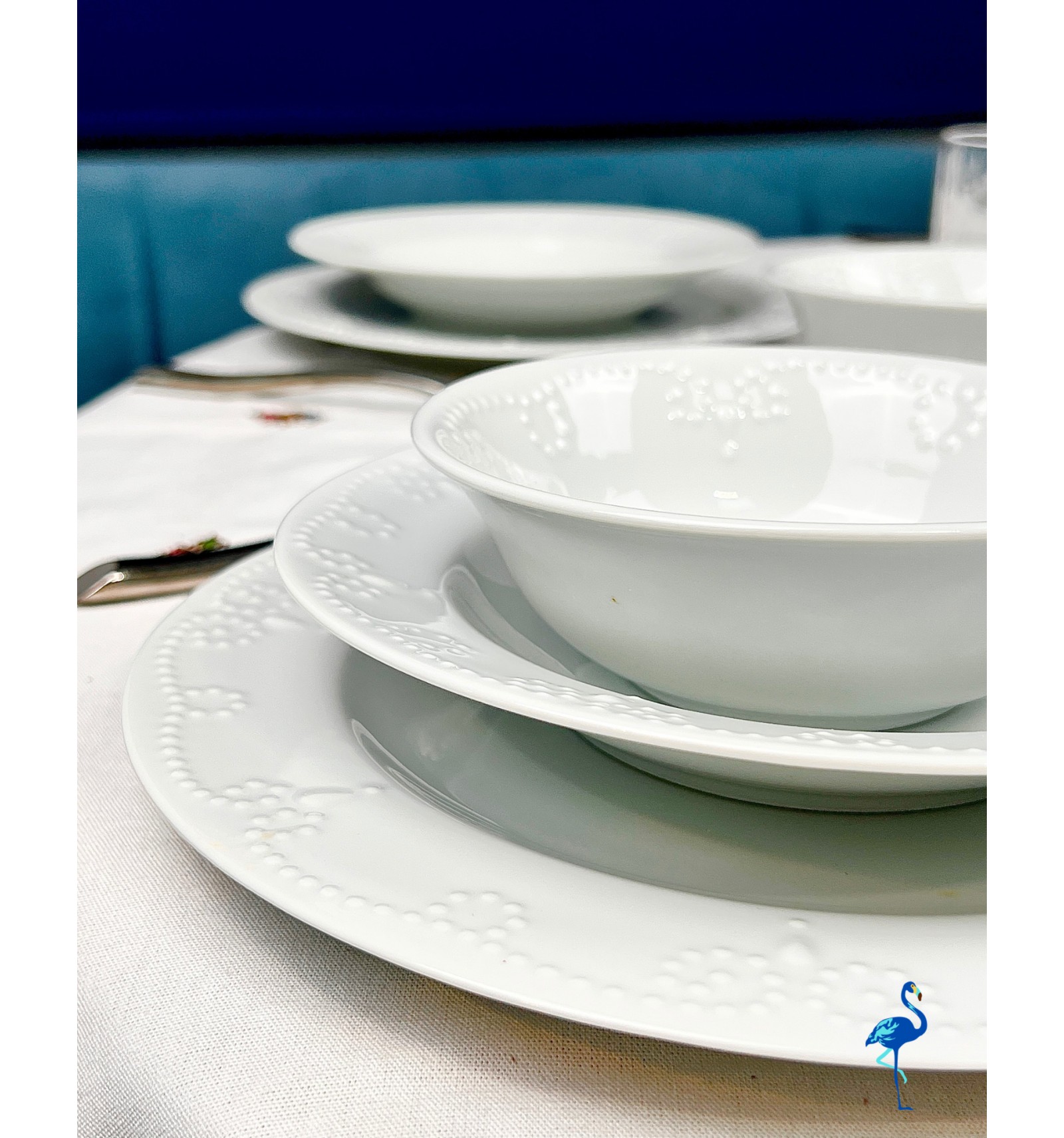 Élégant, intemporel et raffiné, ce service de table Helis est un incontournable pour ceux qui recherchent une vaisselle sobre mais luxueuse. Son design minimaliste est rehaussé par de délicats motifs en relief, apportant une touche de sophistication discrète tout en conservant la pureté du blanc.