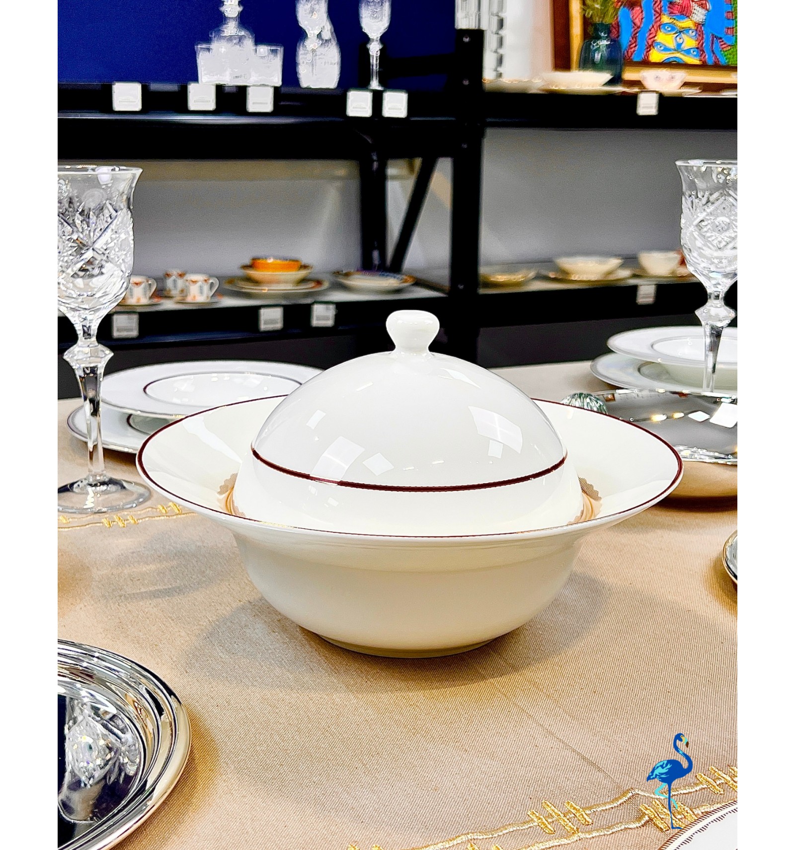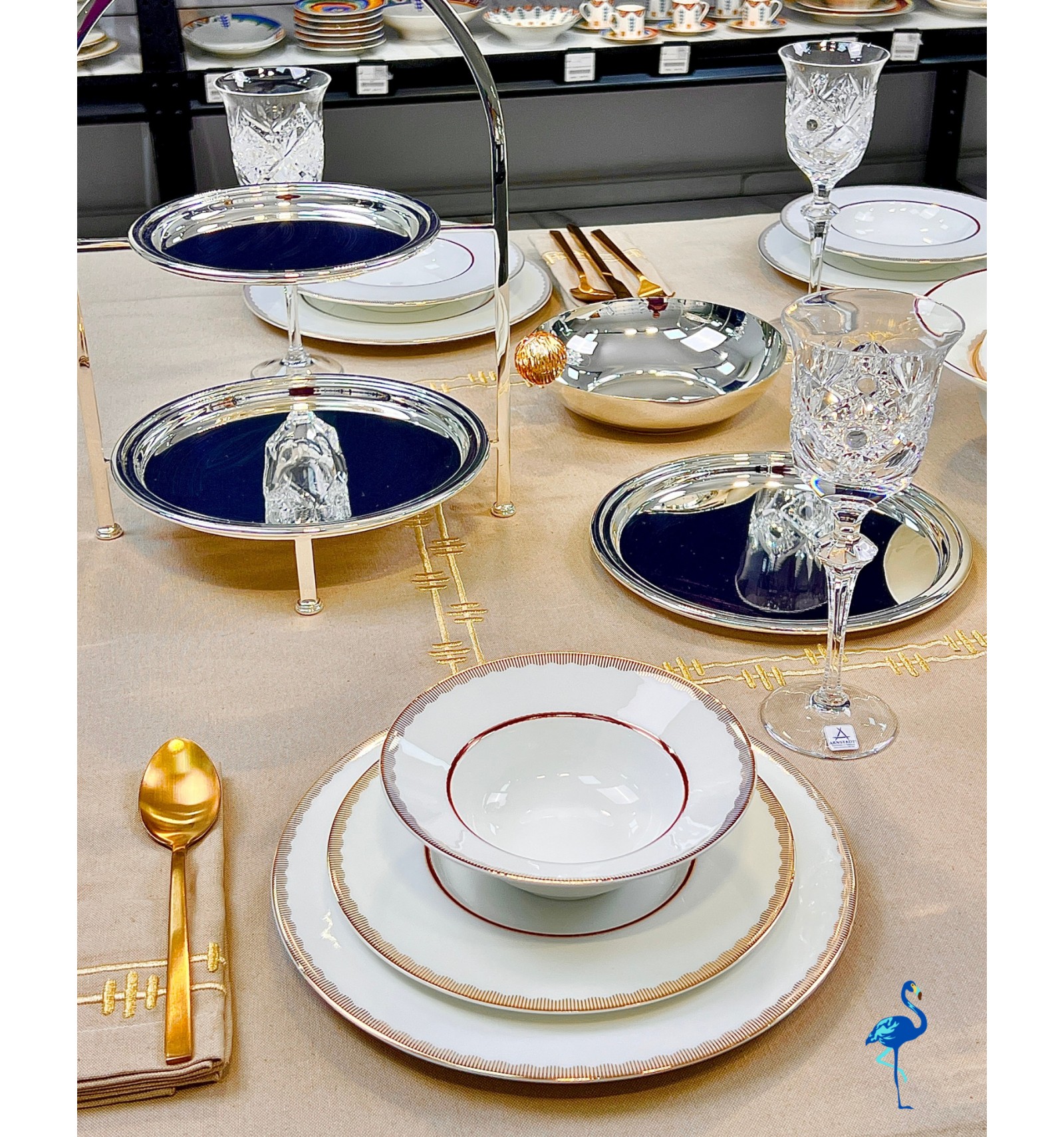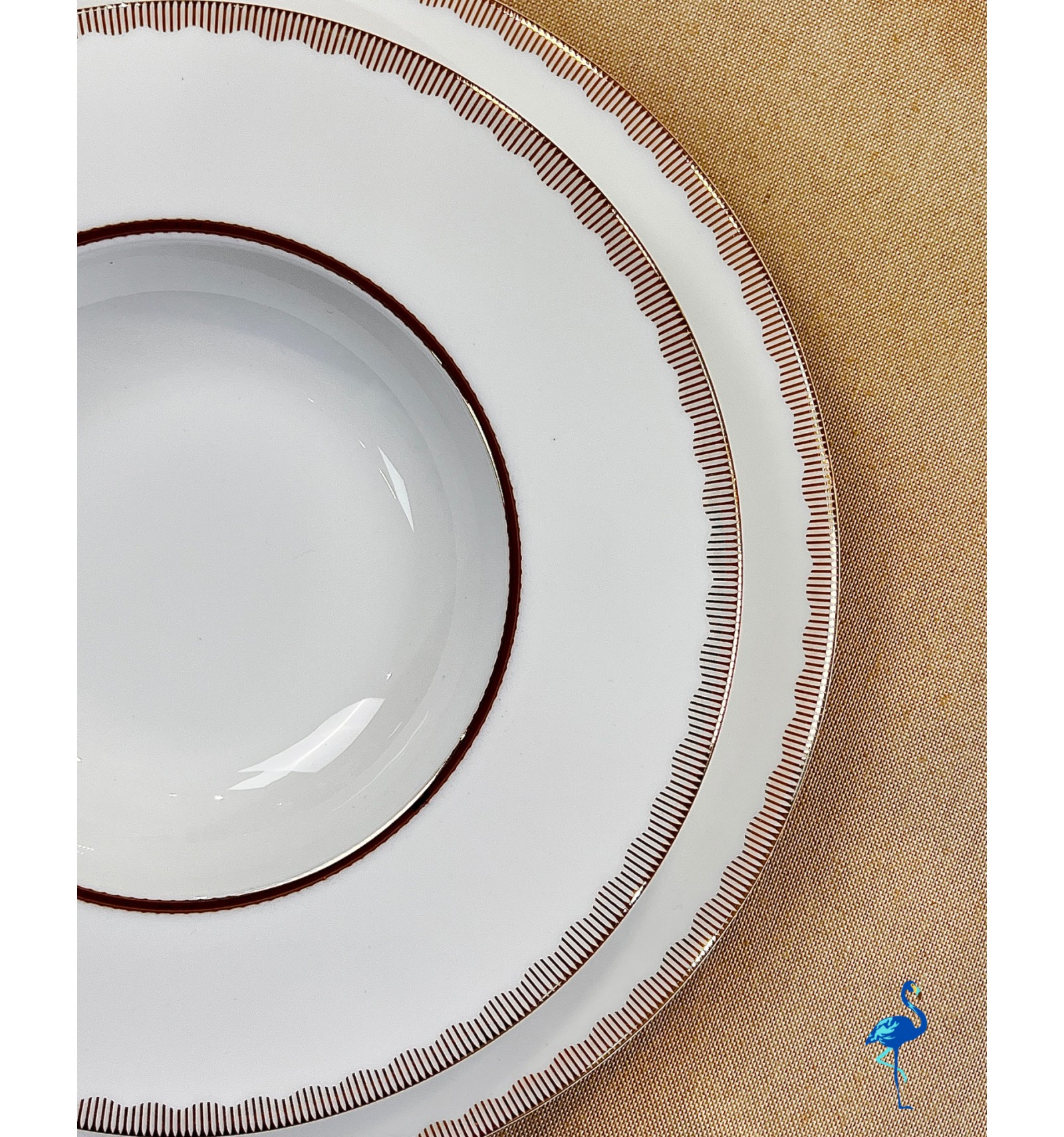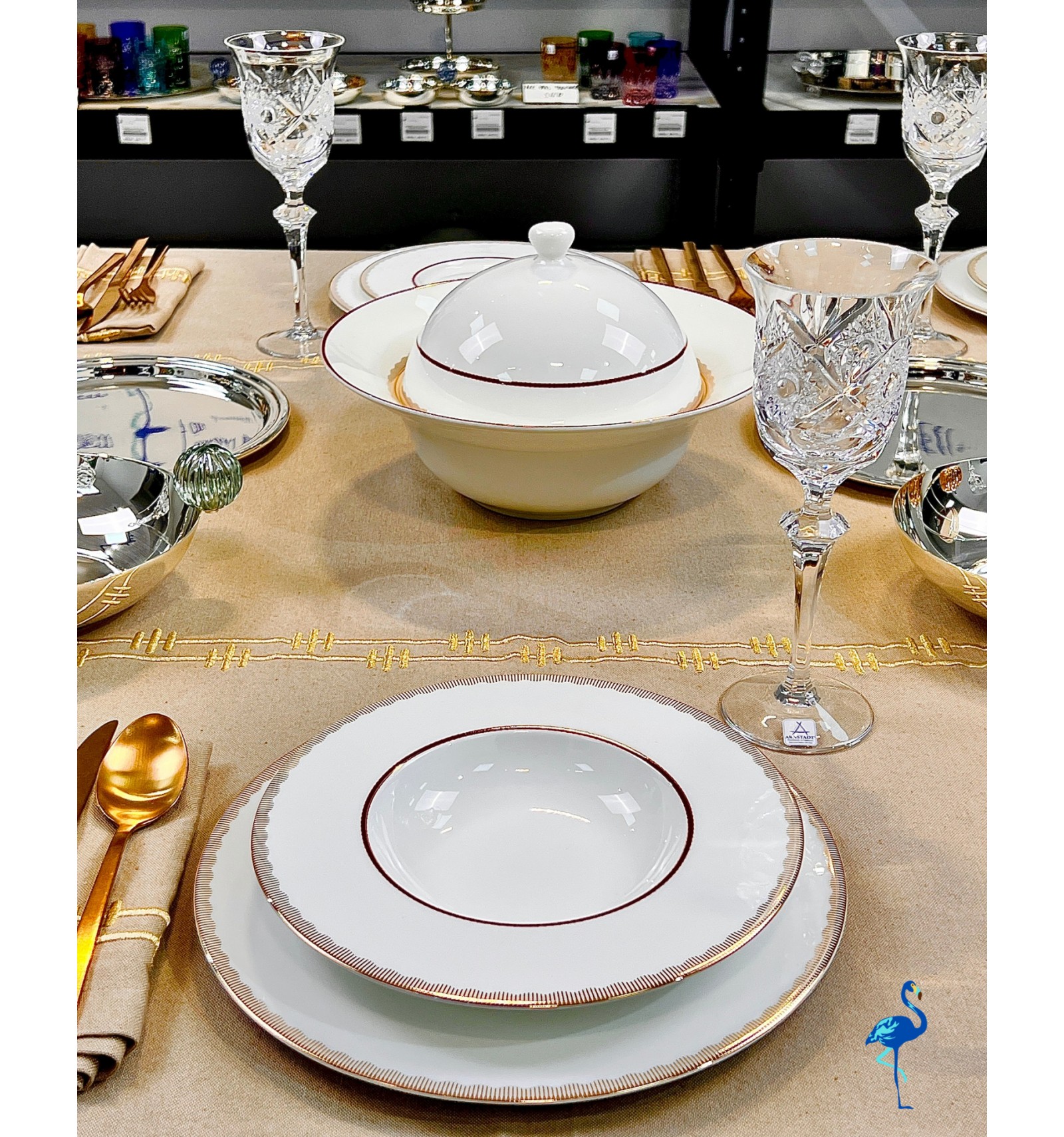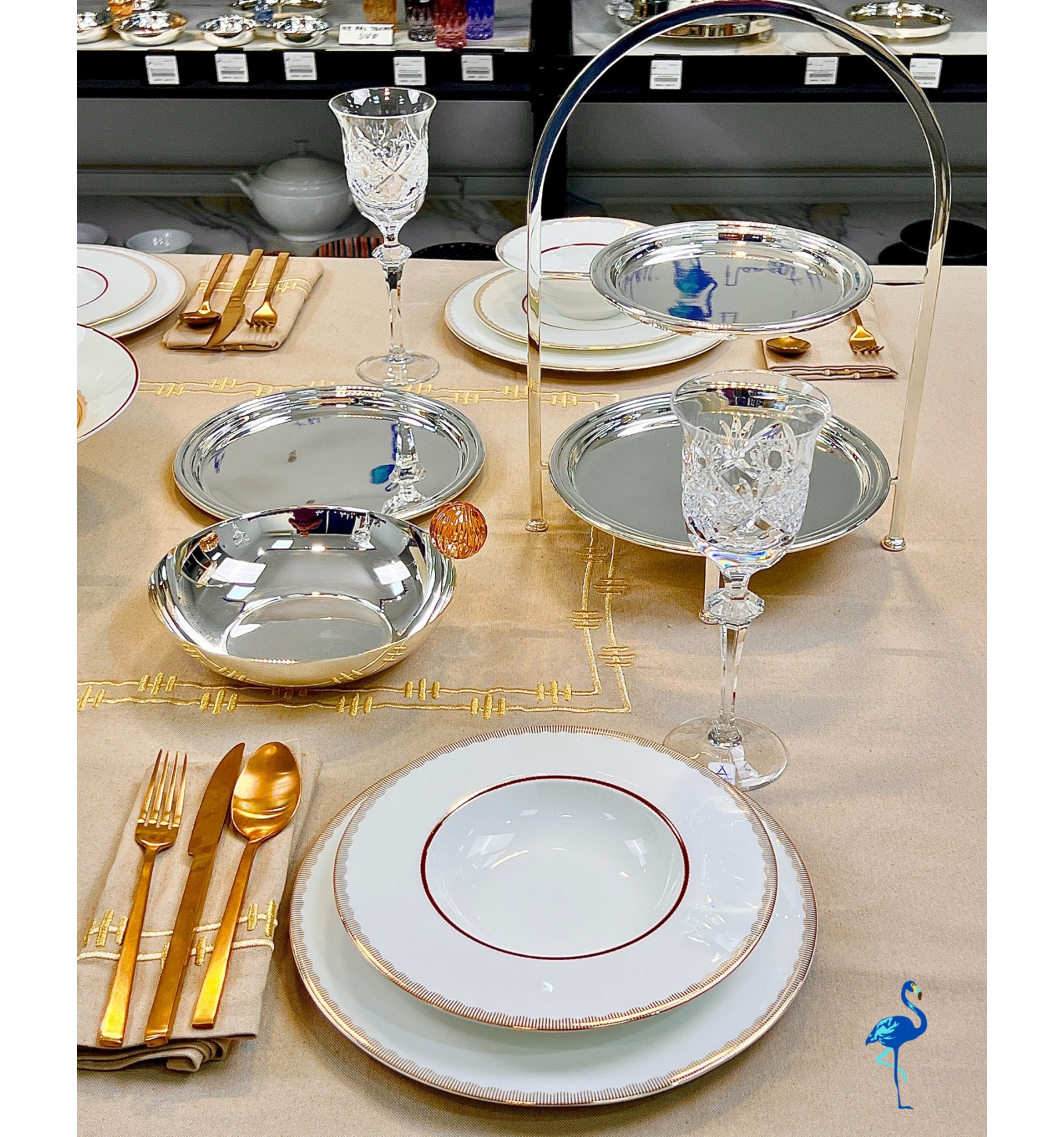 Chaque pièce révèle une finition d’une grande finesse, inspirée de l’art de la table européen, tout en s’intégrant parfaitement dans un décor moderne. Associé à des verres en cristal et des couverts dorés, il crée une atmosphère chaleureuse et distinguée, digne des plus belles tables de réception.